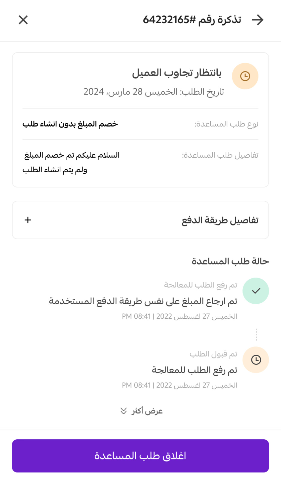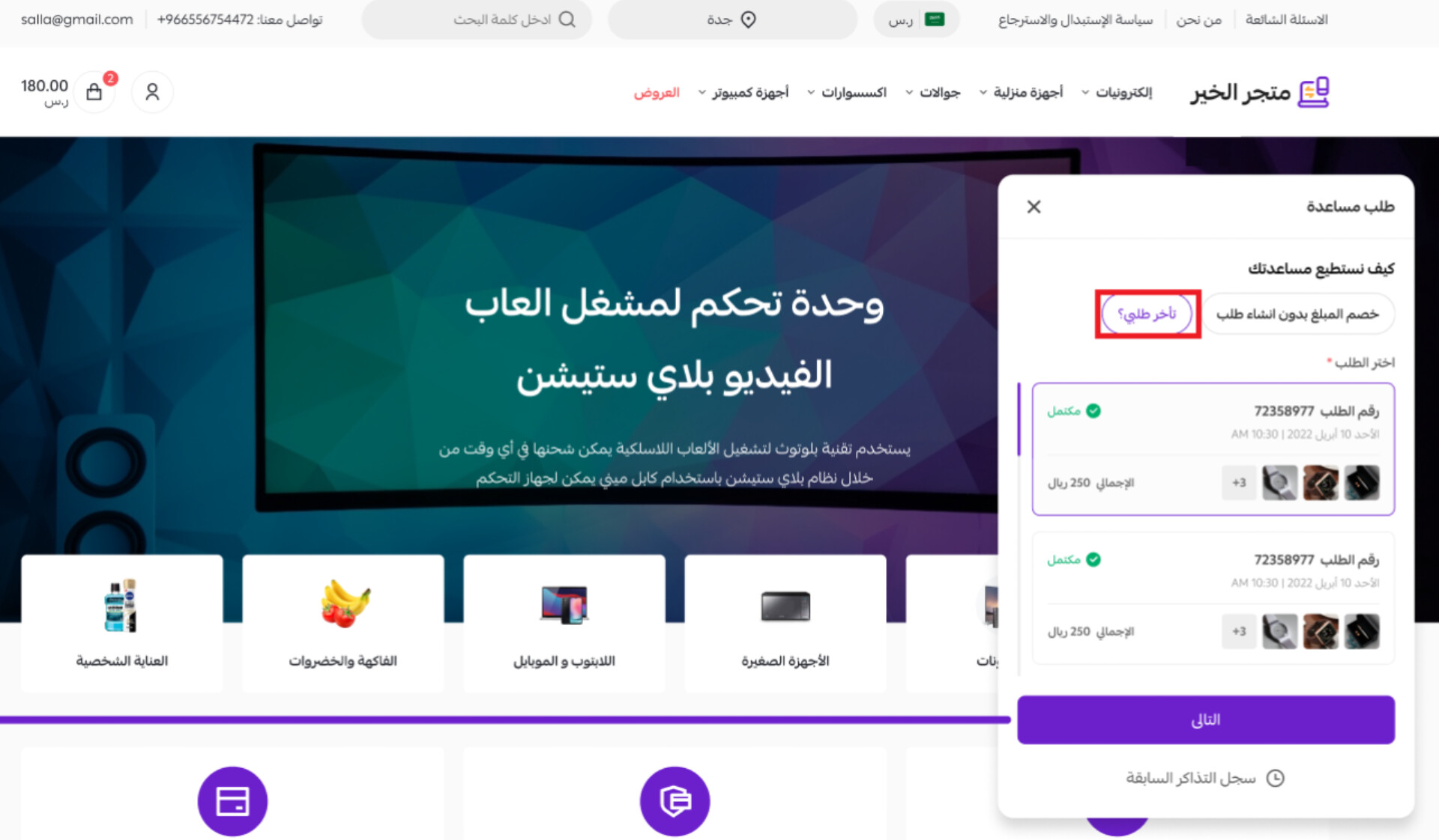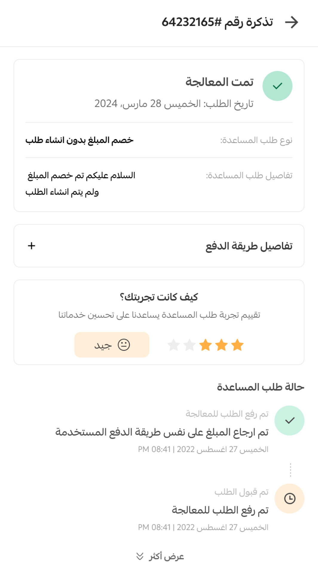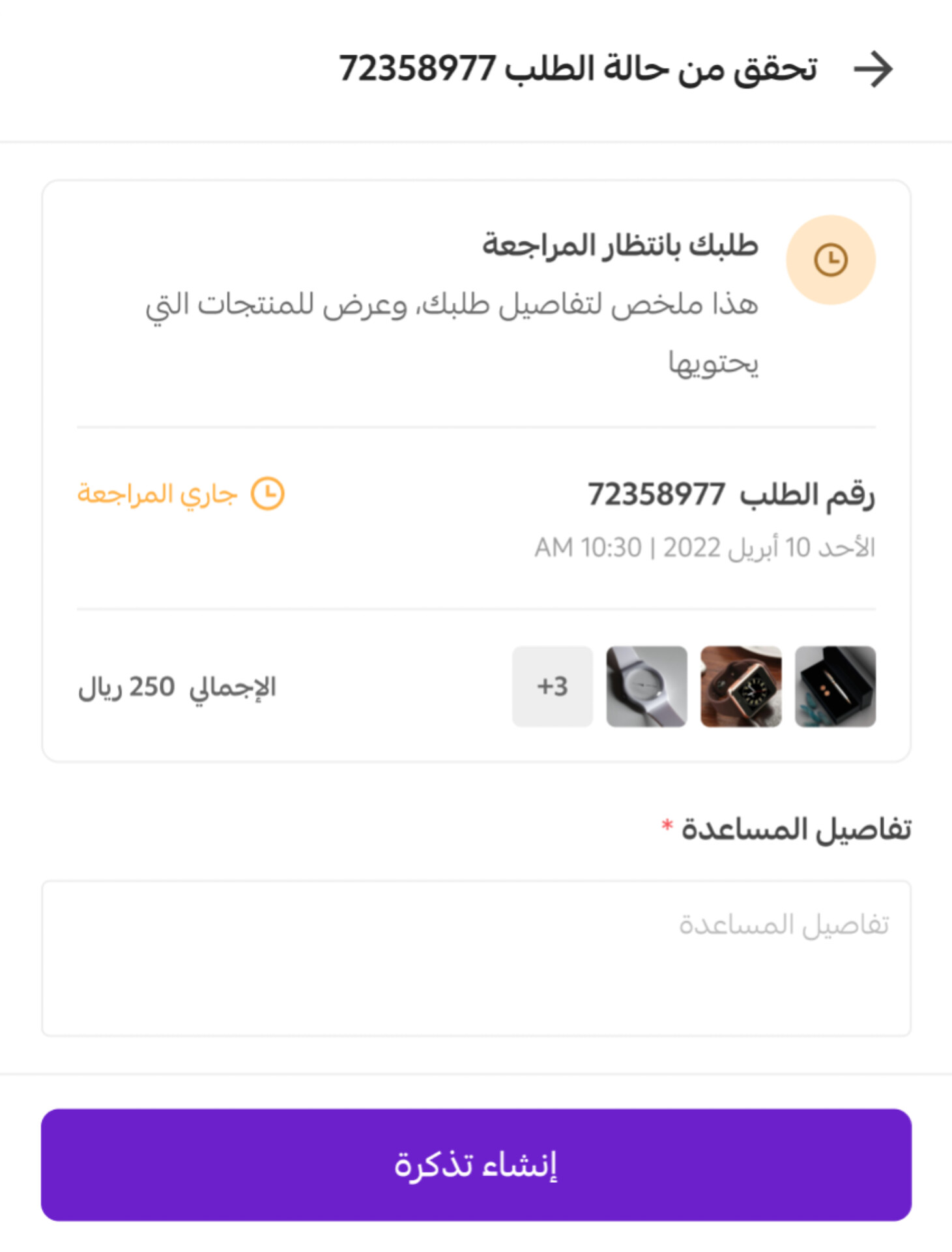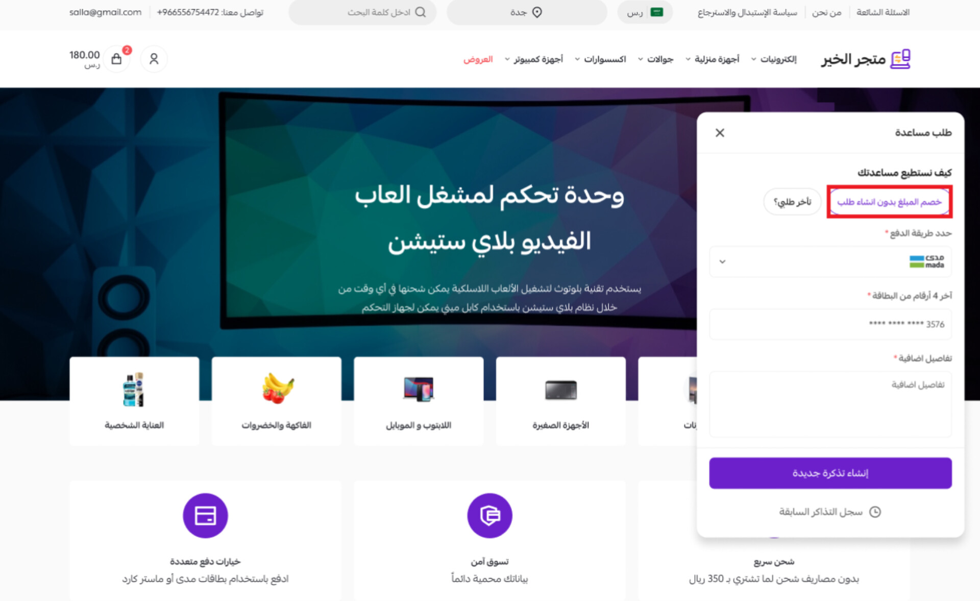 - تذاكر مخصصة لحالات: تأخر الطلب / الخصم دون رقم طلب.
