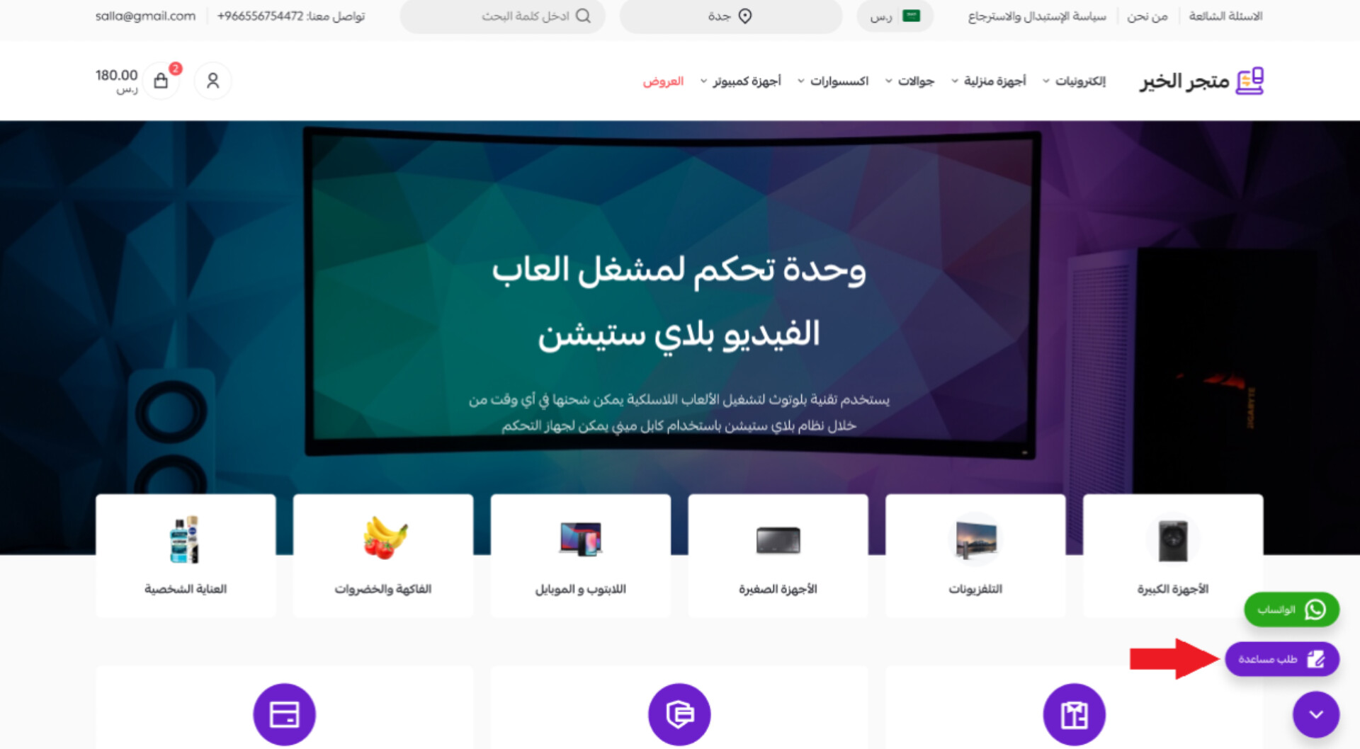 1. من الصفحة الرئيسية للمتجر، اضغط على (طلب المساعدة).